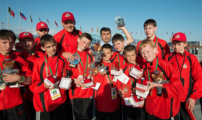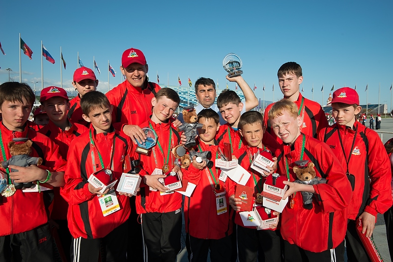 Конечно же, ребята помимо участия в соревнованиях жили своей ребячьей жизнью. Много спорили, юморили. Были мастер-классы, приехали игроки молодёжной баскетбольной команды «Локомотив-Кубань» и звёзды мирового пляжного футбола из «Локомотива» Илья Леонов и Андрей Бухлицкий. Было весело, шумно и дружелюбно. Спрашиваю у ребят, растянувших майку с автографом Леонова: мол, что собираетесь делать с трофеем? Достался он им не без усилий.