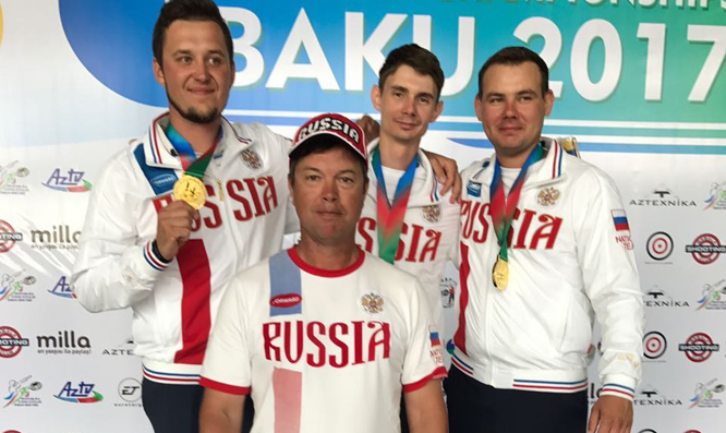 Мужская сборная России стала чемпионом Европы по стендовой стрельбе в упражнении скит в командном зачете.