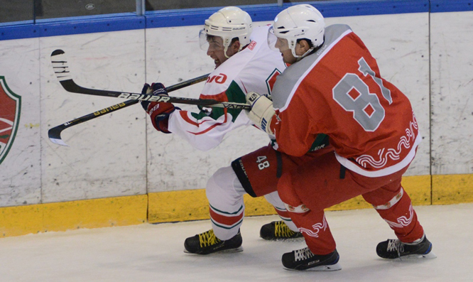 Однако, когда составы в очередной раз подравнялись, именно они организовали быструю атаку, и их форвард Владимир Бакин, выступающий под знаменитым на вечные времена номером Легенды №17, забросил решающую шайбу в стартовом поединке – 3:2. Так турнир начался с небольшой сенсации, из-за которой хозяева рисковали остаться за пределами плей-офф, куда выходят победители трех групп, а также одна из команд, оказавшаяся на втором месте и набравшая максимальное количество очков.