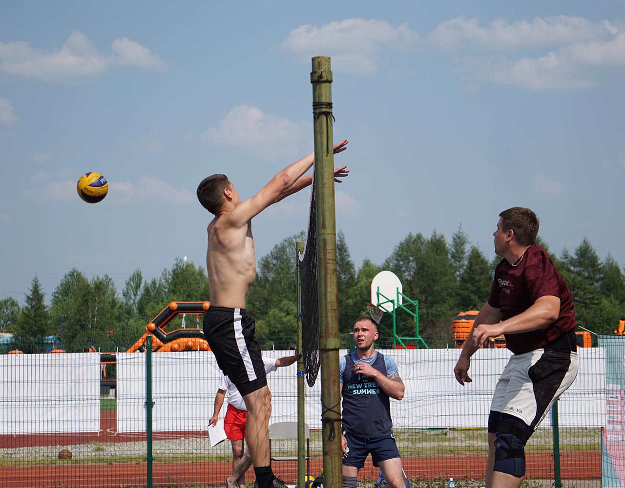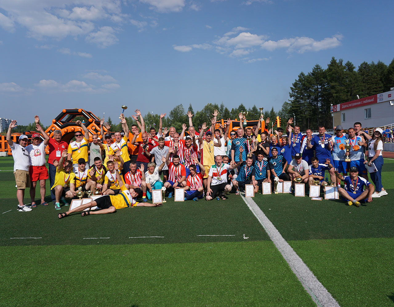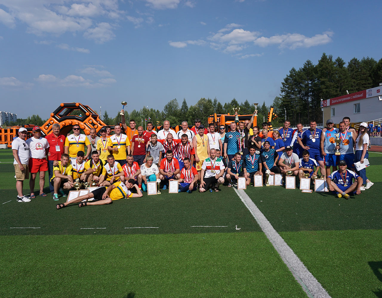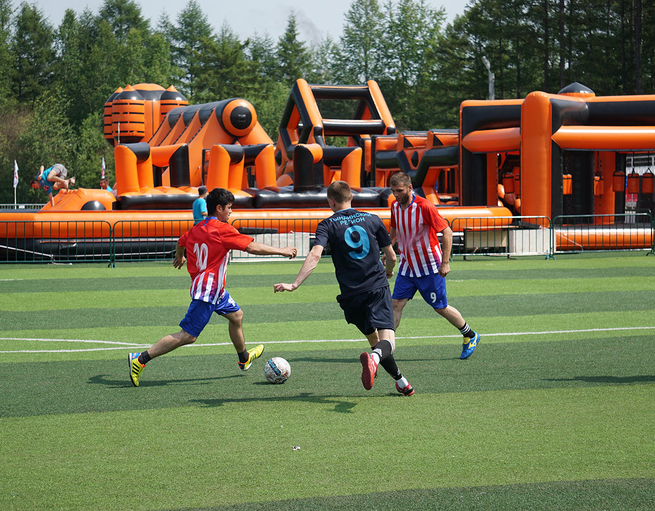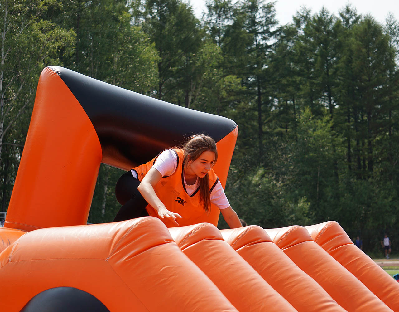После официального открытия спортивная активность захватила все сектора центрального стадиона Тынды. Под нещадно палящим солнцем здесь параллельно развернулась борьба на площадках для мини-футбола, волейбола и баскетбола, в двух шагах от них было проведено и первенство по армрестлингу. Перед финальными поединками по игровым видам спорта узловые сборные успели пройти и, пожалуй, самое интересное и весёлое испытание дня - стилизованную под поезд надувную полосу препятствий, преодоление которой, несмотря на всю кажущуюся простоту, стало для некоторых самой настоящей проблемой.