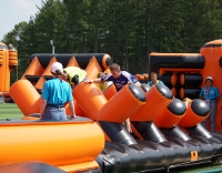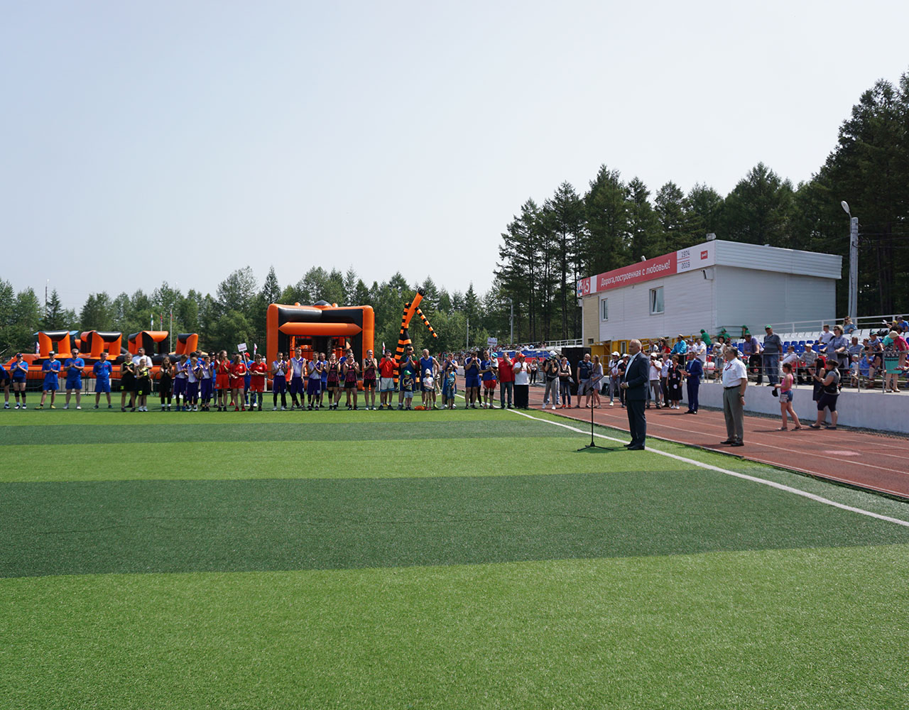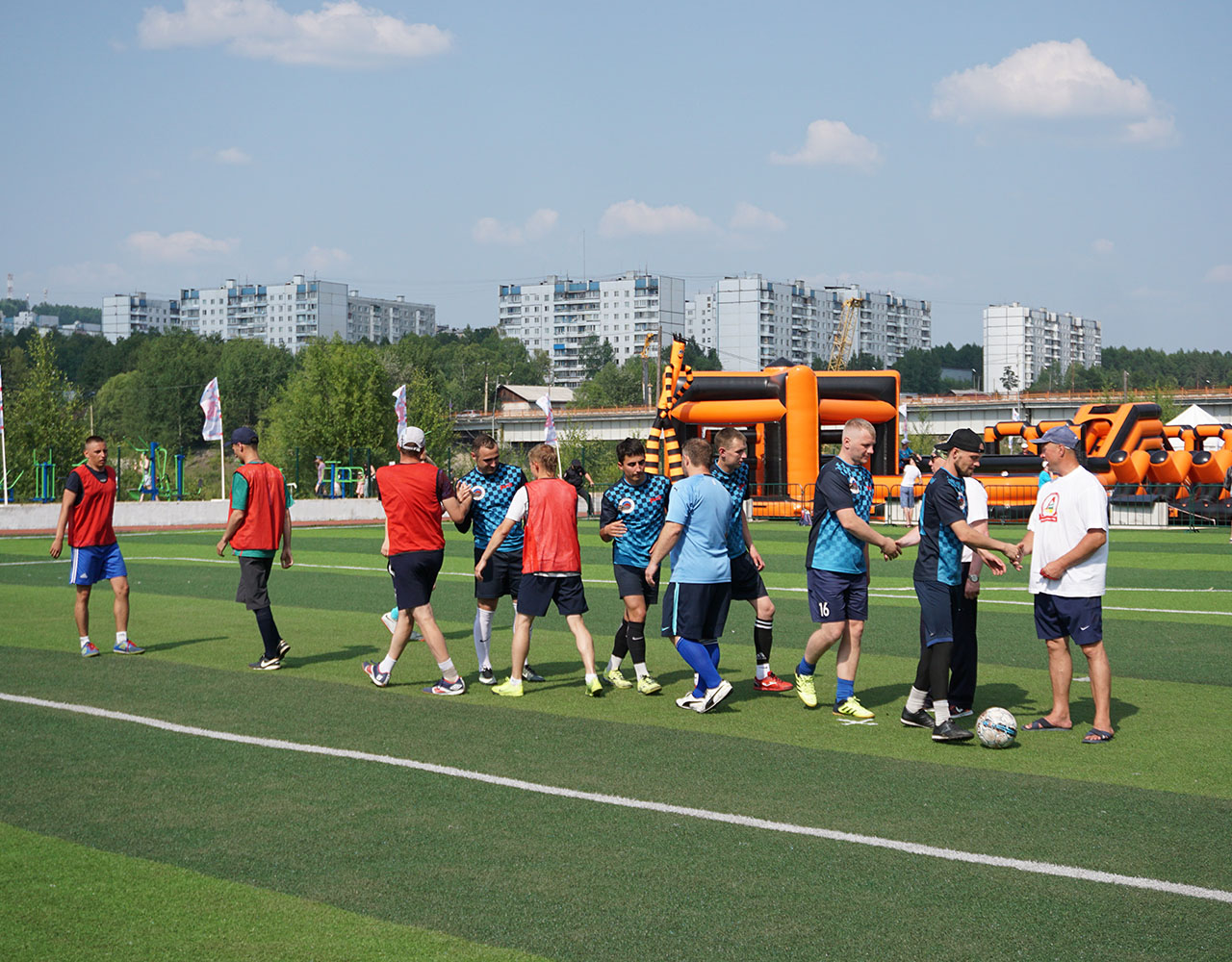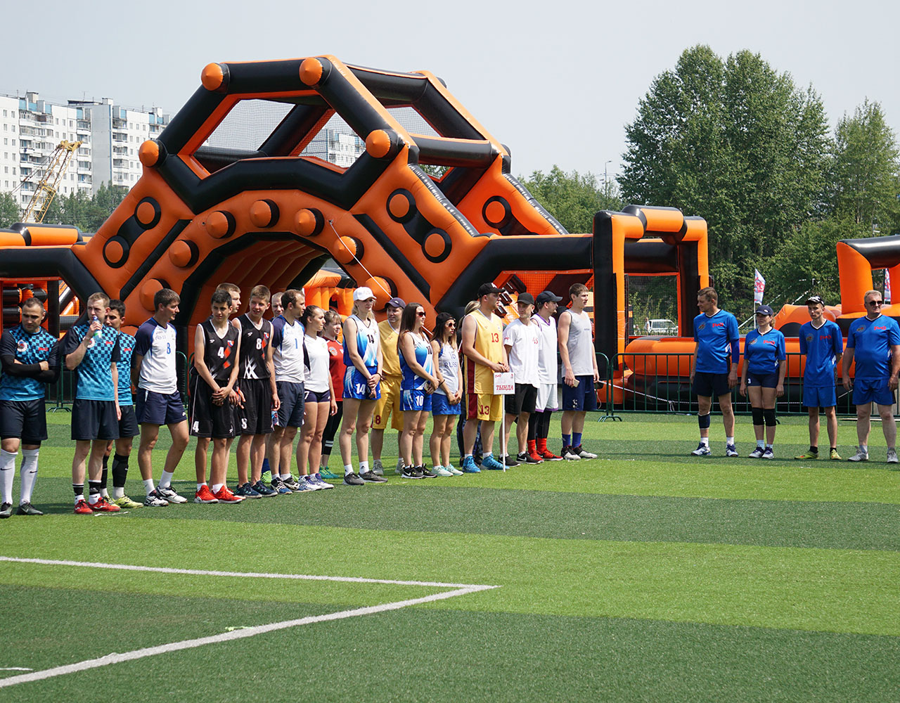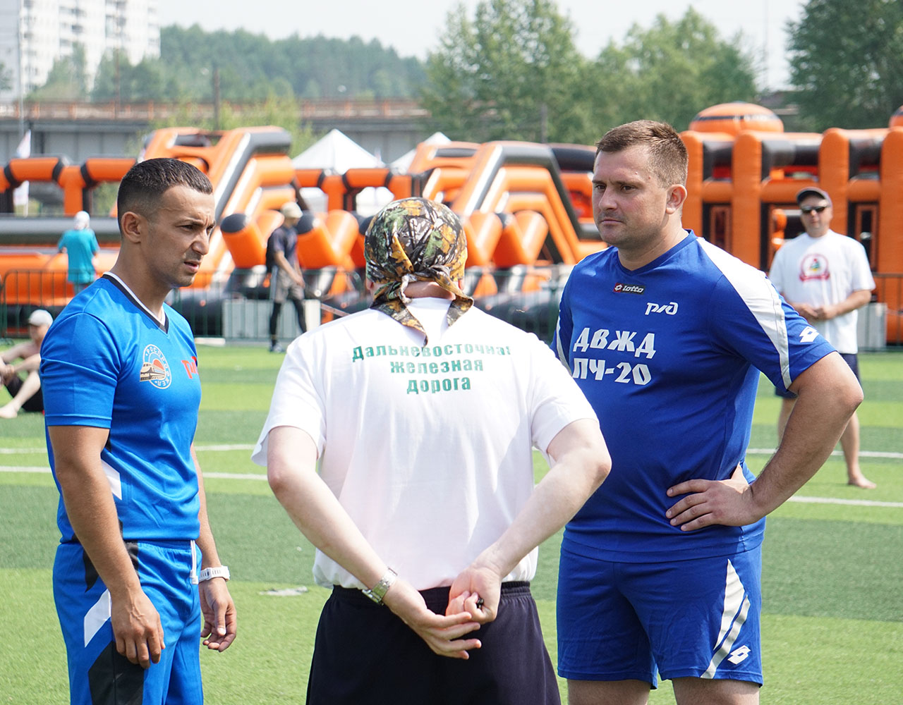 После официального открытия спортивная активность захватила все сектора центрального стадиона Тынды. Под нещадно палящим солнцем здесь параллельно развернулась борьба на площадках для мини-футбола, волейбола и баскетбола, в двух шагах от них было проведено и первенство по армрестлингу. Перед финальными поединками по игровым видам спорта узловые сборные успели пройти и, пожалуй, самое интересное и весёлое испытание дня - стилизованную под поезд надувную полосу препятствий, преодоление которой, несмотря на всю кажущуюся простоту, стало для некоторых самой настоящей проблемой.