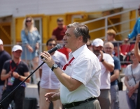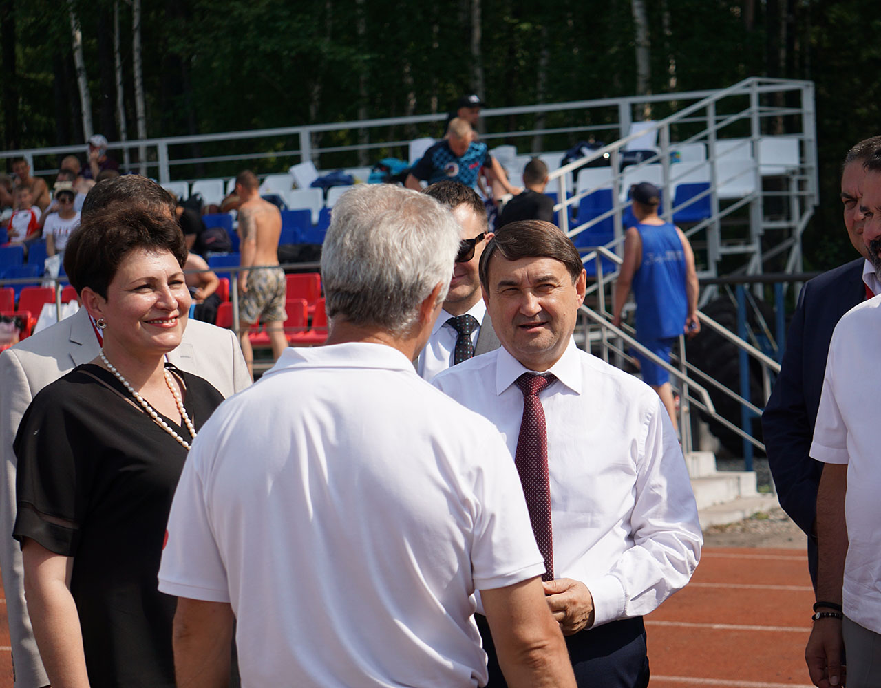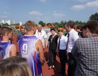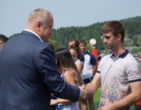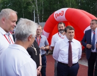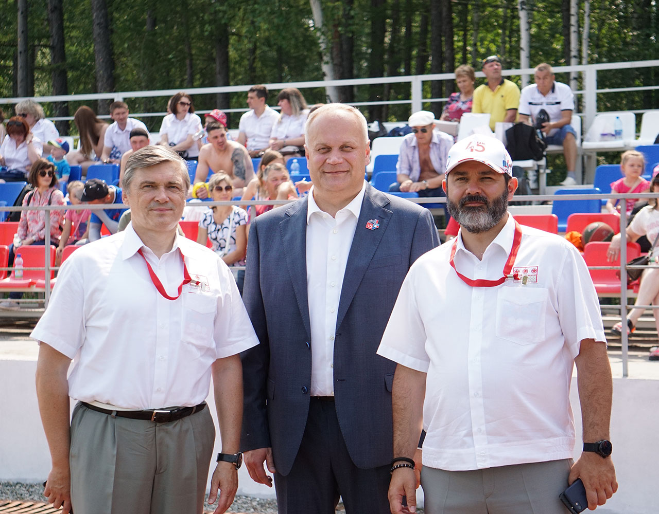 Аккурат к финальному матчу мини-футбольного турнира на стадион прибыла большая делегация почётных гостей БАМовского праздника. Понаблюдать за спортивными подвигами спортсменов-железнодорожников, пообщаться и поздравить их с юбилеем магистрали приехали помощник Президента Российской Федерации - секретарь Государственного совета Игорь Левитин, губернатор Амурской области Василий Орлов и мэр города Тынды Марина Михайлова.