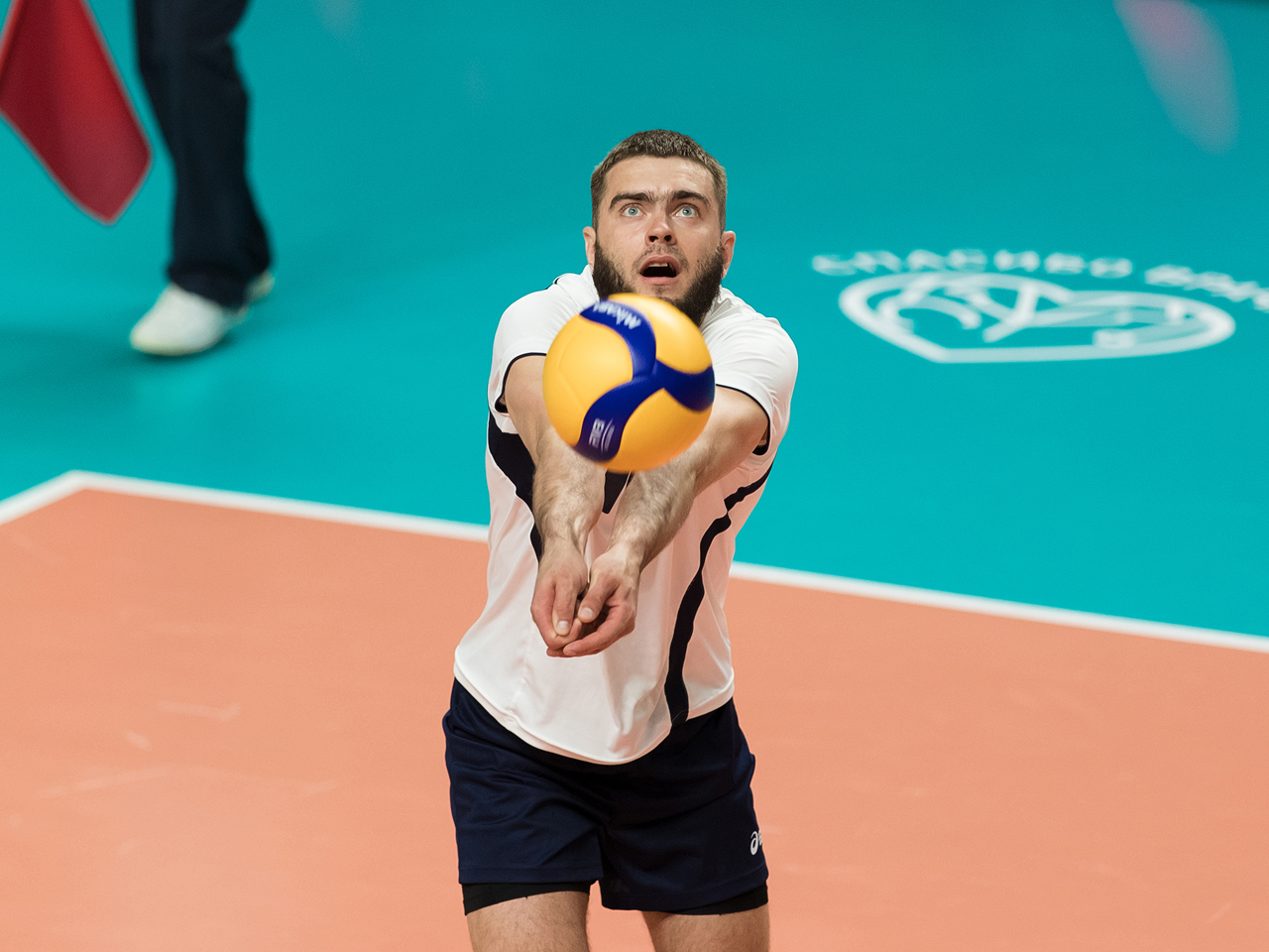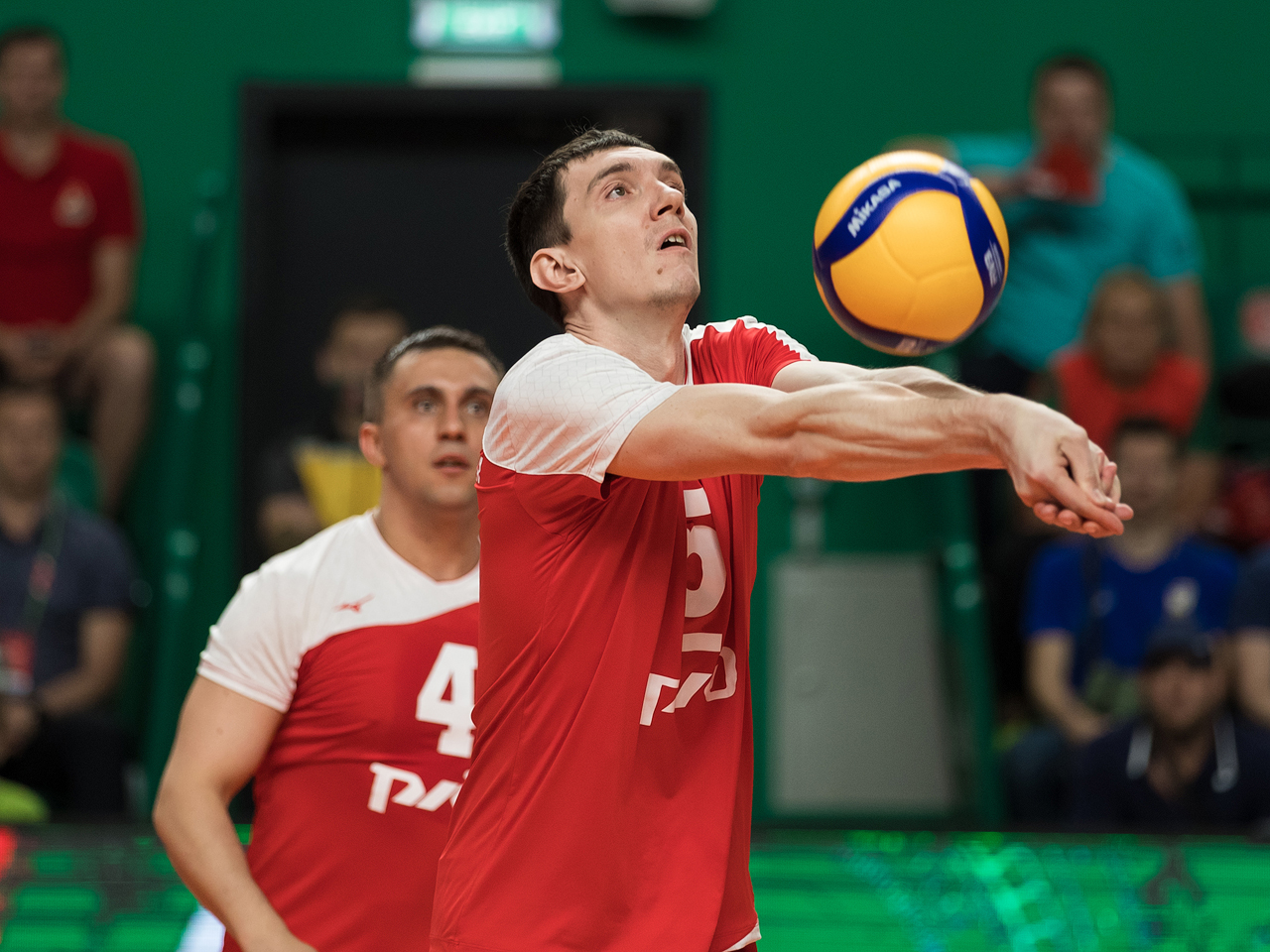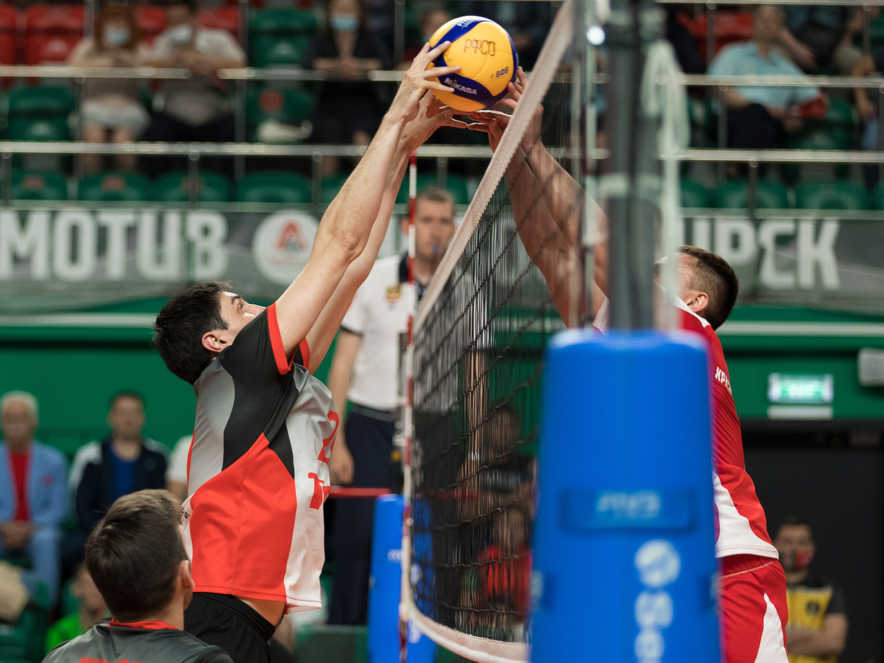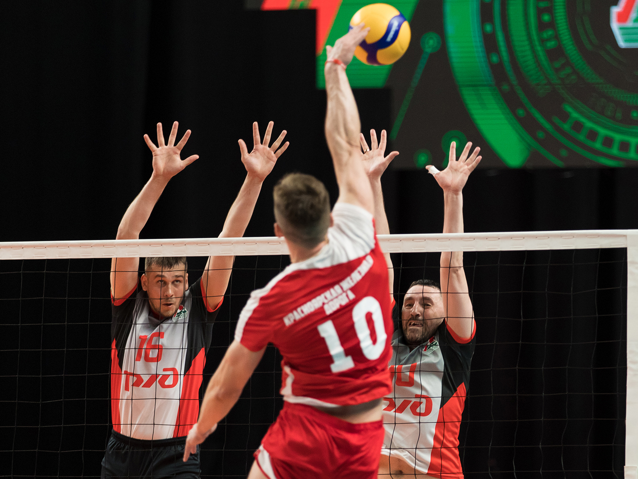 Вскоре на площадку под громкие аплодисменты стали вызываться главные герои вечера - волейболисты Забайкальской и Западно-Сибирской магистралей. Большая часть первой партии прошла в невероятно равной борьбе, соперники ожесточённо бились за каждый розыгрыш, однако в концовке ЗапСибу всё же удалось вырваться вперёд - 25:21.