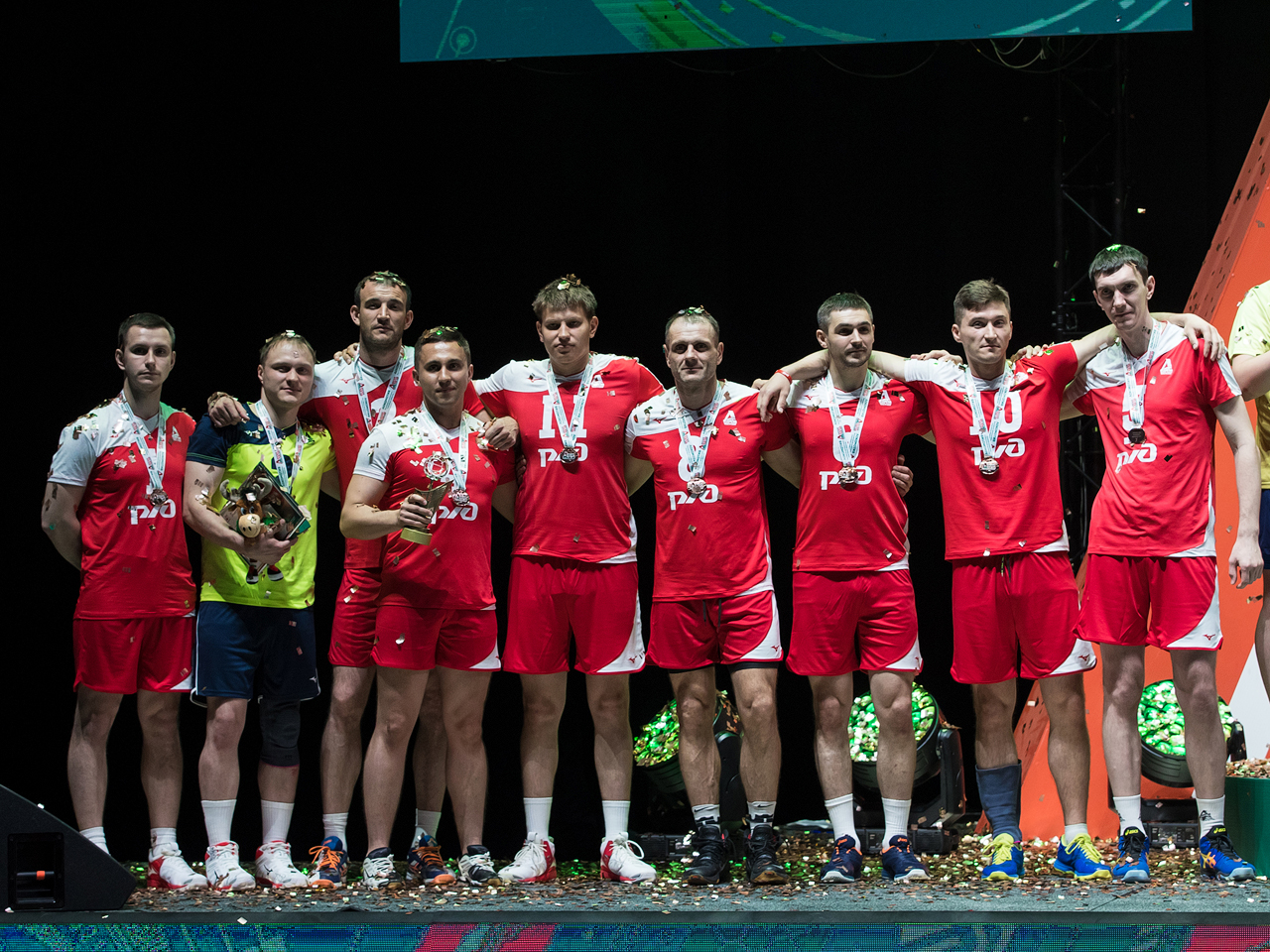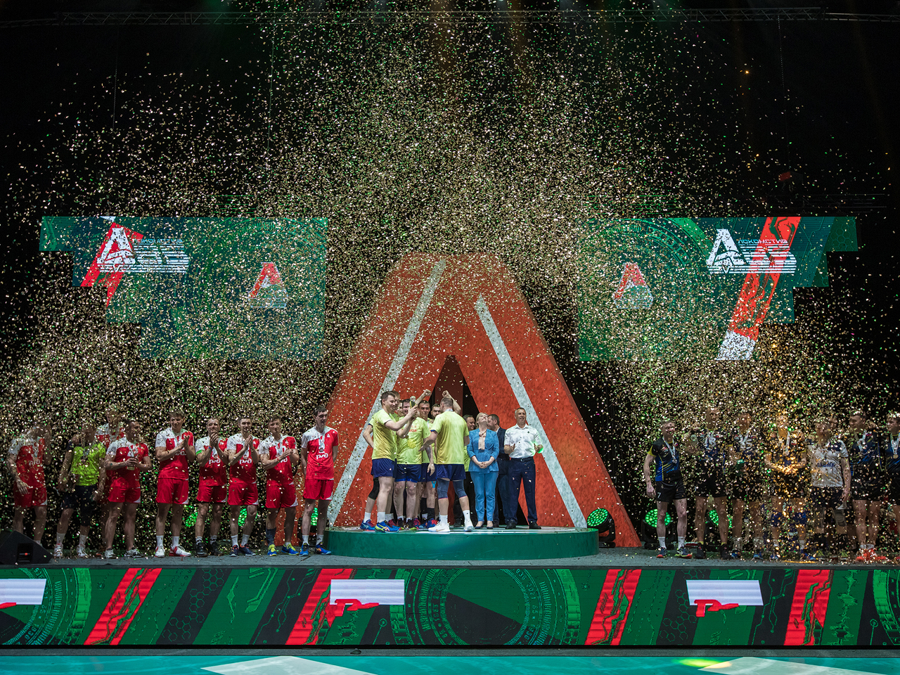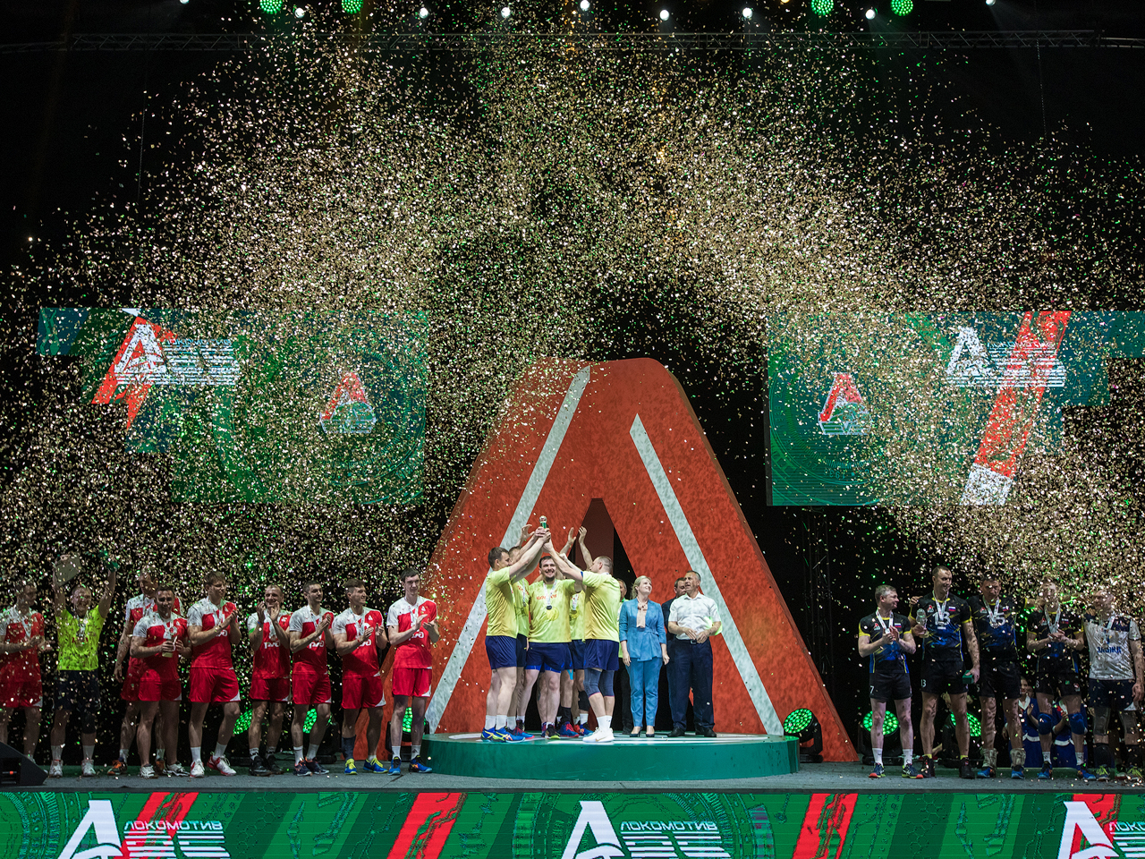 Перед главным матчем Кубка собравшихся в зале продолжили «разогревать» артисты, маскоты и матч-анонсеры главной волейбольной команды. Важной частью программы стала премьера видеоролика из цикла «Локомотив» - это мы!«, который был посвящён главному судье соревнований, Заслуженному тренеру РФ Василию Ковальчуку. Сразу после показа генеральный директор РФСО «Локомотив» Андрей Голдобин вручил Василию Дмитриевичу юбилейную награду железнодорожного спортобщества - почётный знак «За достижения в спорте».